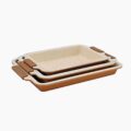 Unutrašnji antibakterijski granitni premaz ne upija mirise niti arome, sprečava lepljenje hrane i olakšava čišćenje. Zahvaljujući ekološki prihvatljivoj formulaciji bez PFOA, PFOS i PTFE, plehovi su bezbedni za Vas i Vašu porodicu. Uklonjive silikonske ručke otporne do 240°C omogućavaju bezbedno rukovanje i pomeranje plehova čak i kada su potpuno zagrejani, a po potrebi se mogu skinuti kako bi podnele i više temperature pečenja.