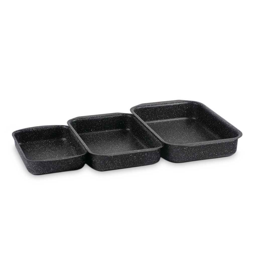 Pripremite ukusna jela s lakoćom uz naš set tepsija Royalty Line od 4 komada, dizajniran da zadovolji sve Vaše kulinarske potrebe. Zahvaljujući izdržljivom kamenom premazu, ove tepsije omogućavaju ravnomerno zagrevanje i sprečavaju lepljenje hrane, čineći pečenje i čišćenje jednostavnijim nego ikad.
